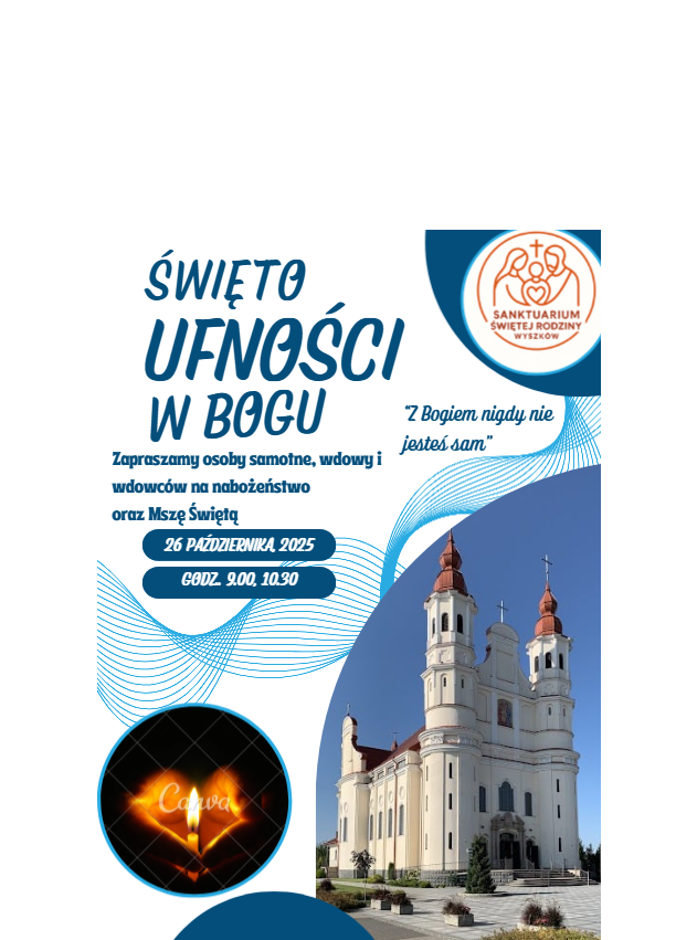 W niedzielę, 26 października, br. zapraszamy na Mszę Św. i nabożeństwo o godz. 9.00 lub 10.30 osoby samotne, wdowy i wdowców. Pragniemy w tym dniu modlić się za Te osoby i zawierzyć Panu Bogu całe nasze życie, ufność i nadzieję.